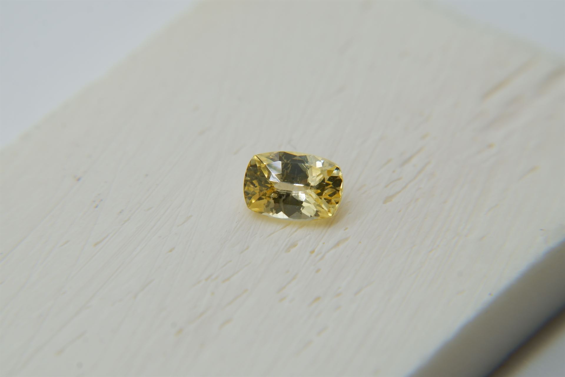 | GEMSTONE APPRAISAL / EVALUATION: | The fair market value of this vivid intense yellow sapphire, with its premium handcrafted rectangular cushion cut and excellent polish, is estimated to be approximately $1,200. Its eye-clean clarity, strong saturation, and lack of treatments enhance its desirability, making it a valuable addition to any collection. This Sri Lankan Ceylon sapphire, while beautiful, may not be the best investment for the future due to its smaller carat weight of 0.95. Instead, it would serve well as a piece of fine jewelry, such as a pendant or engagement ring, where its vibrant color and quality cut can be showcased. Focusing on aesthetic appeal rather than investment value would be the most fitting use for this gemstone. |