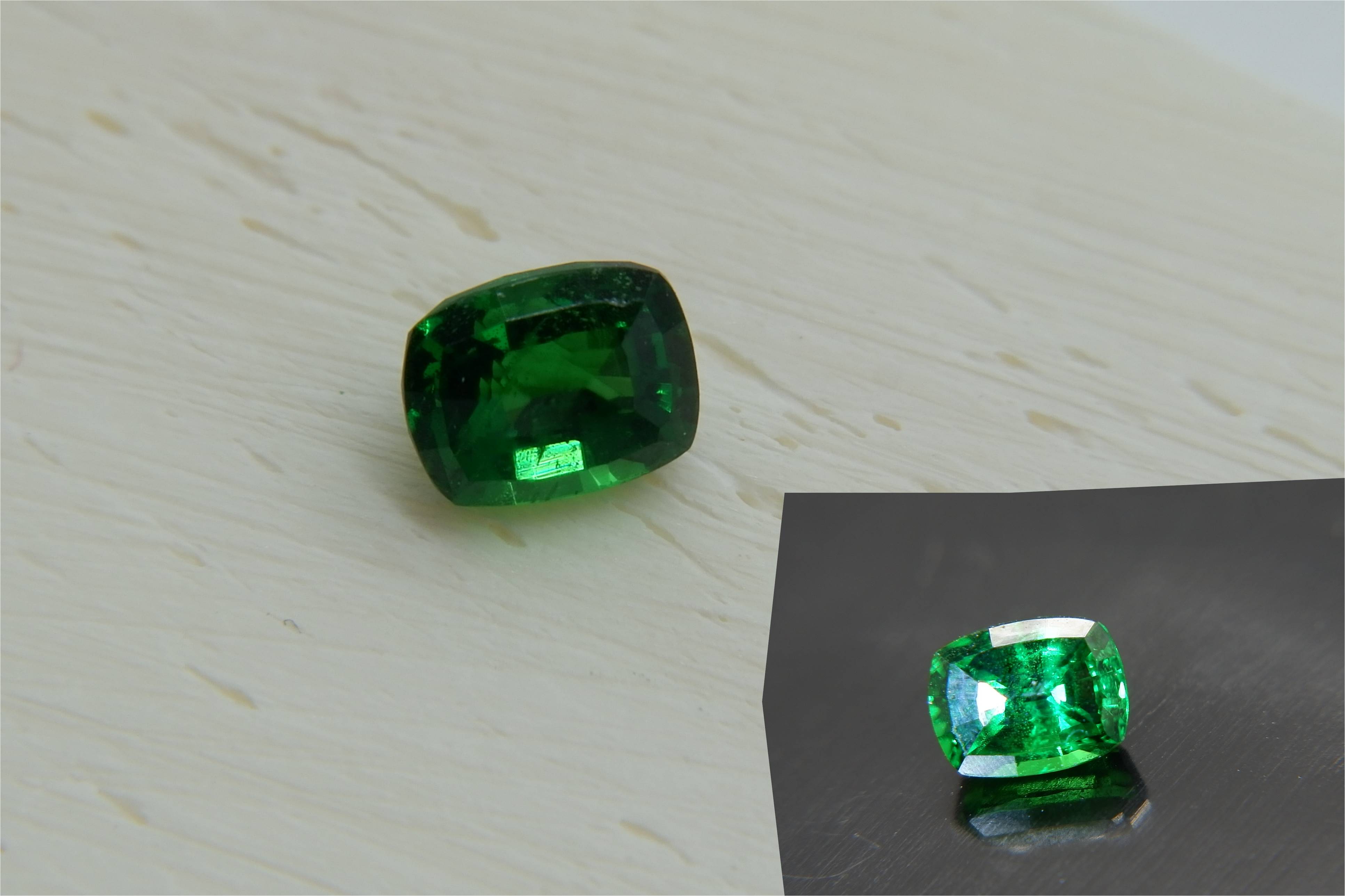 | GEMSTONE APPRAISAL / EVALUATION: | The fair market value appraisal for the vivid grass-green Tsavorite Garnets, totaling 2.2 carats, is estimated at approximately USD 1,800. This valuation considers the premium handcrafted brilliance rectangular cushion cut, eye-clean clarity, and the absence of treatments, which all enhance the overall quality and appeal of these gemstones. As for future investment potential, this Madagascar Tsavorite Garnet may not be the best asset due to its relatively smaller carat size and the current market volatility for colored gemstones. Instead, it could be seen as a beautiful piece for personal collection or jewelry settings, where its vibrant color and unique cut can be showcased, making it an exceptional accessory rather than a financial investment. |