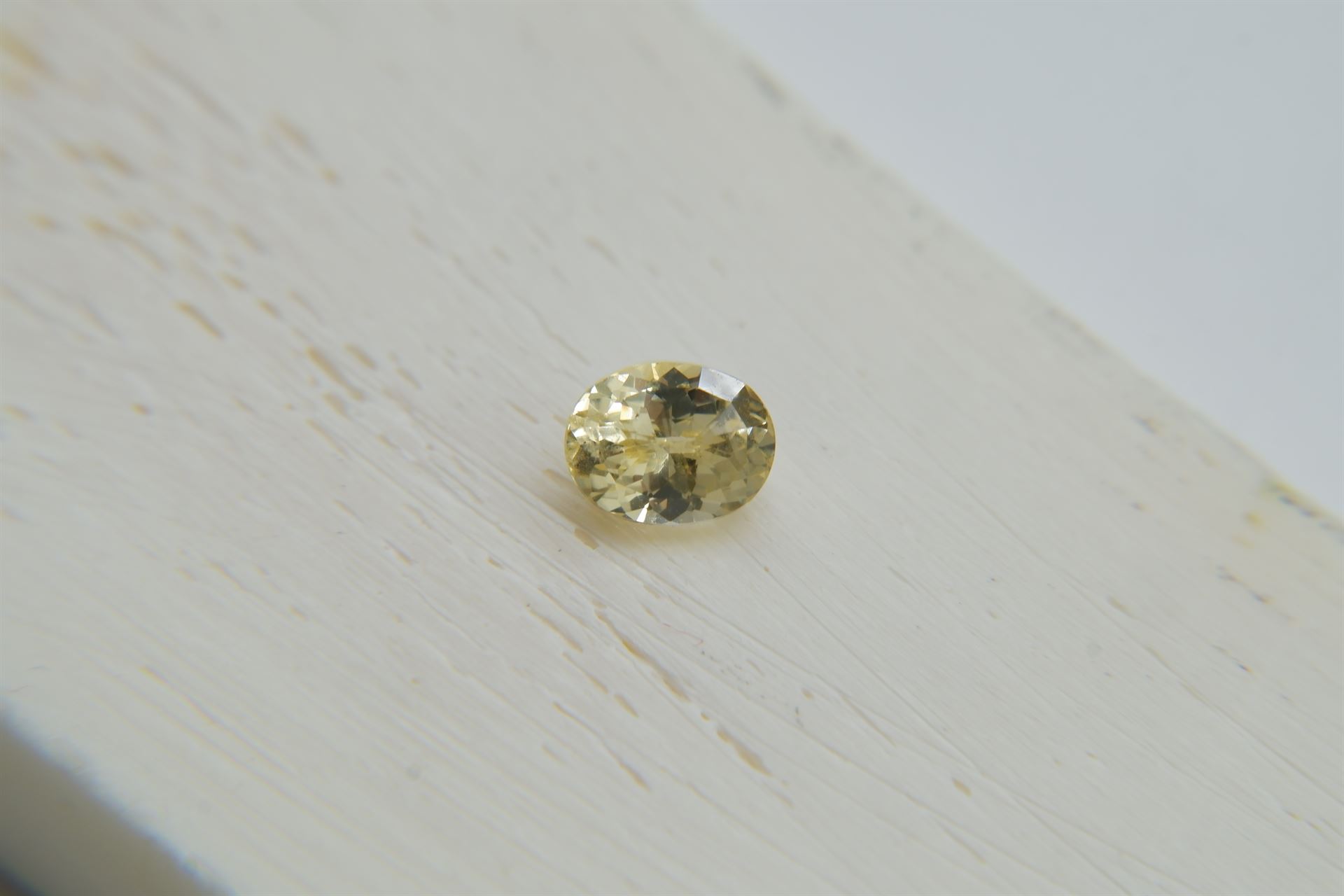 | GEMSTONE APPRAISAL / EVALUATION: | The fair market value appraisal for this vivid pastel yellow sapphire from Sri Lanka, weighing 0.95 carats, presents a well-crafted, eye-clean gemstone with excellent finish and polish. Considering its premium handcrafted brilliance oval cut, light saturation, and medium light tone, the estimated market value of this gemstone is approximately USD 1,200. This Ceylon sapphire, while beautiful and well-crafted, may not be considered a strong investment asset due to its smaller carat size and niche color appeal. However, it could serve as a lovely piece of jewelry, perhaps in a pendant or ring, making it an ideal choice for personal wear or gifting. Its unique qualities ensure it will be cherished, rather than strictly viewed as an investment. |
