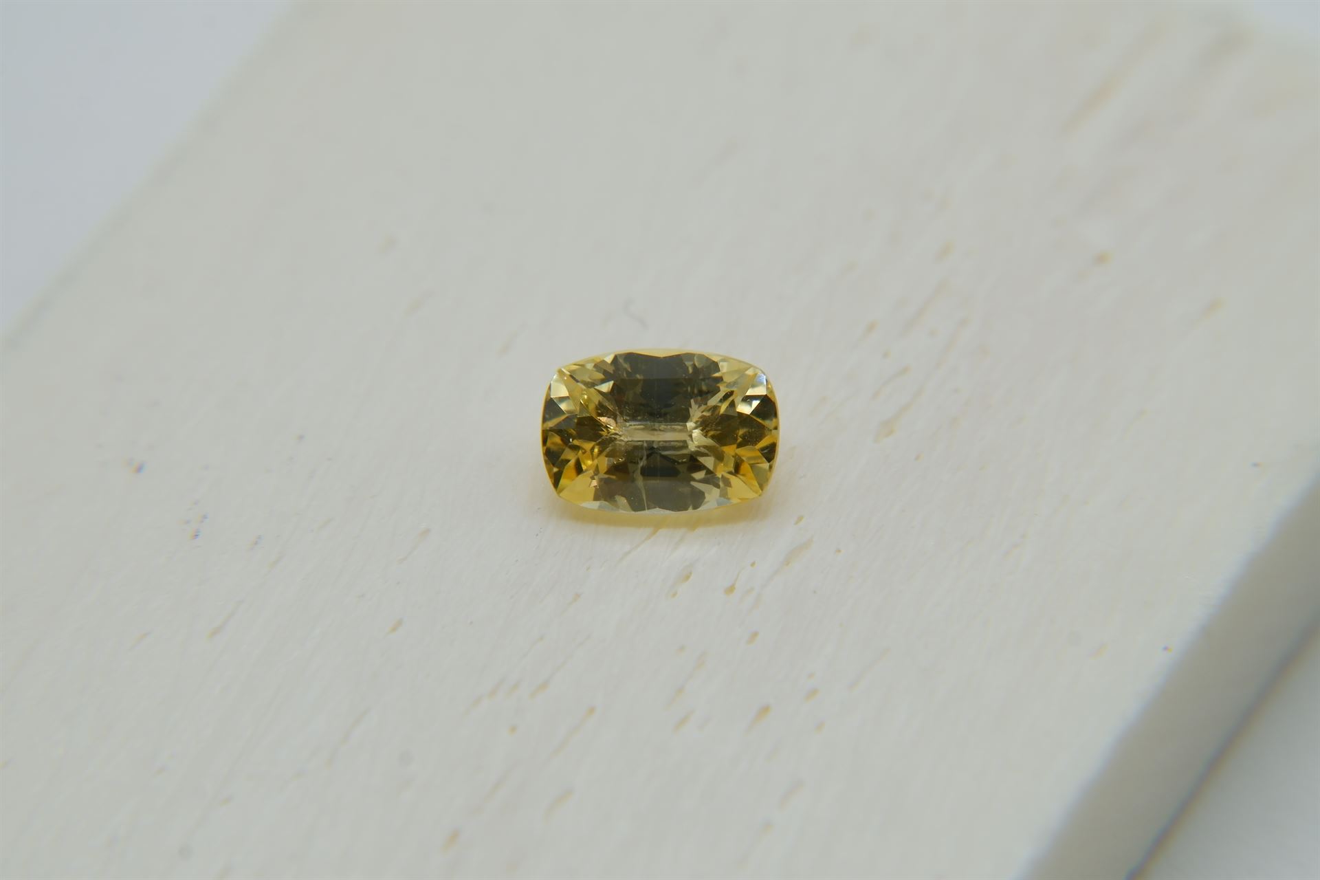| GEMSTONE APPRAISAL / EVALUATION: | The fair market value of this vivid intense yellow sapphire, with its premium handcrafted rectangular cushion cut and excellent polish, is estimated to be approximately $1,200. Its eye-clean clarity, strong saturation, and lack of treatments enhance its desirability, making it a valuable addition to any collection. This Sri Lankan Ceylon sapphire, while beautiful, may not be the best investment for the future due to its smaller carat weight of 0.95. Instead, it would serve well as a piece of fine jewelry, such as a pendant or engagement ring, where its vibrant color and quality cut can be showcased. Focusing on aesthetic appeal rather than investment value would be the most fitting use for this gemstone. |
