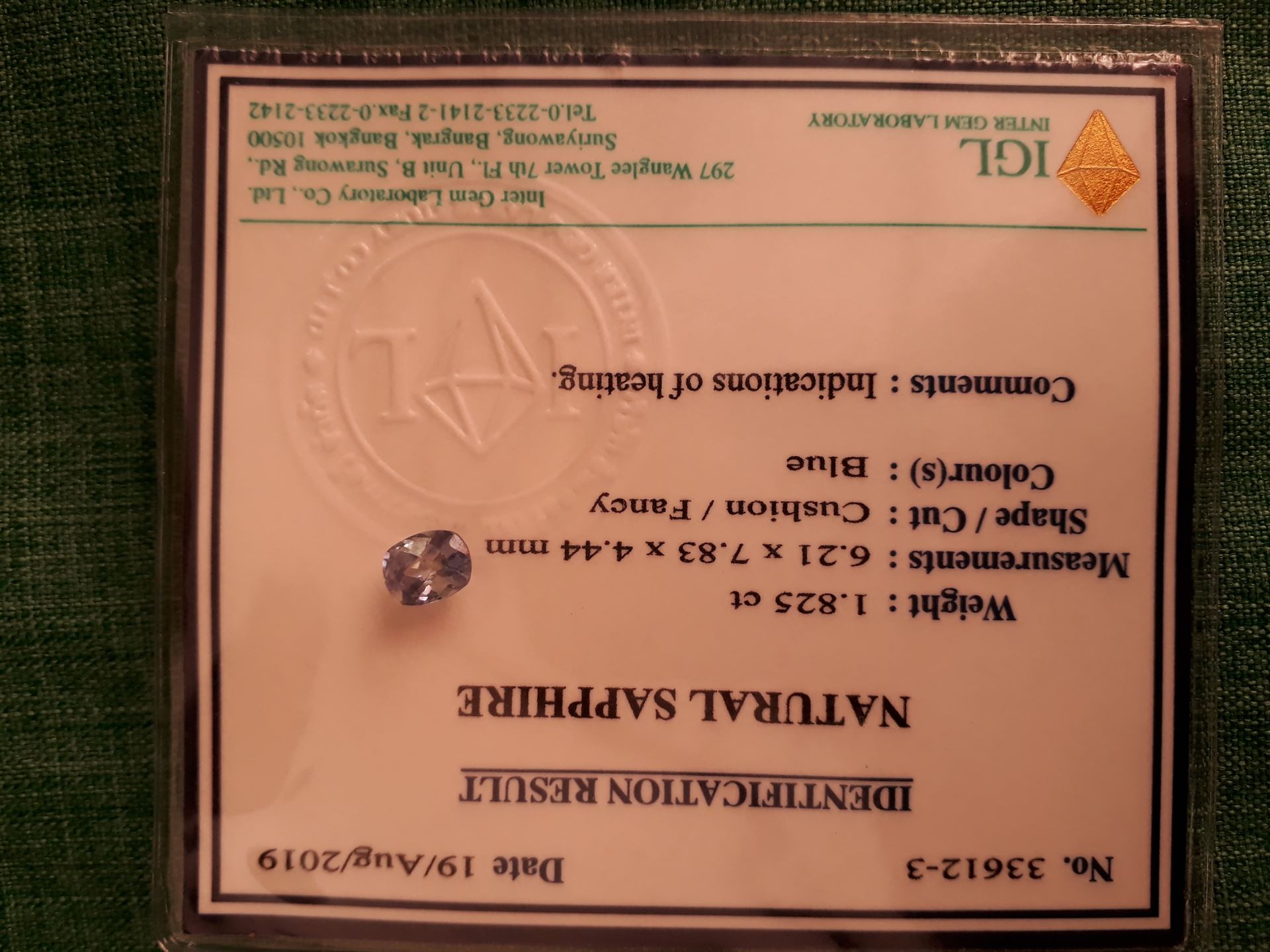 | CERTIFICATE: | and is certified by the IGL/GIA Gem Laboratory in form of a Lab Brief |